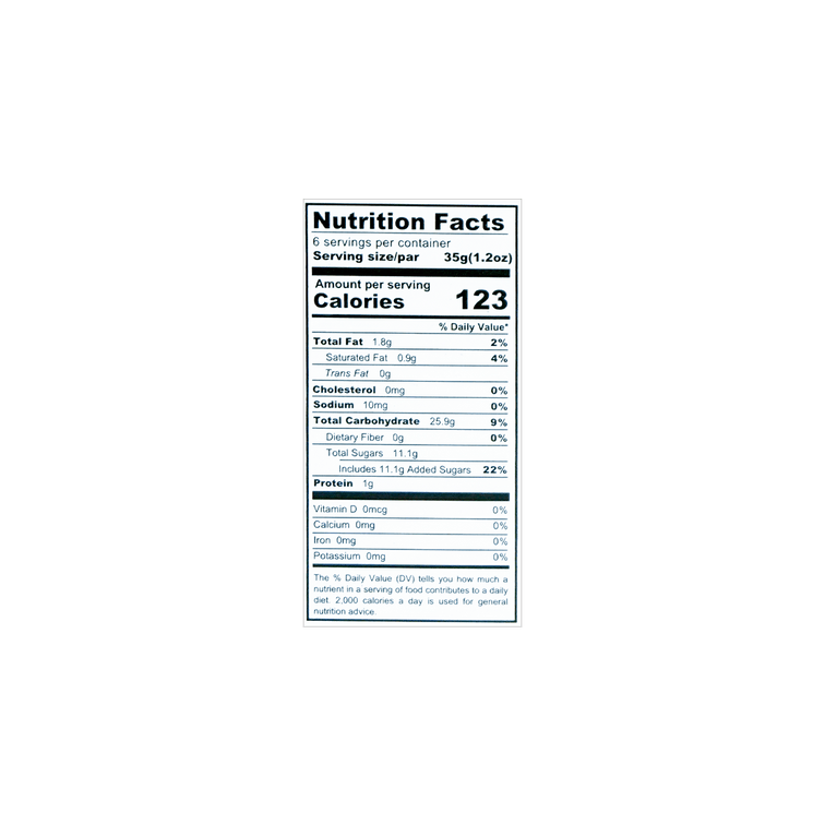 *免责声明:本页面所展示的营养成分信息来自商品包装,仅供参考。因包装版本、语言或拍摄方式不同,内容可能存在偏差或显示不完整,请以实际收到商品包装为准。如对成分、过敏原或适用人群有疑问,建议在使用前仔细阅读包装说明,或联系客服获取帮助。