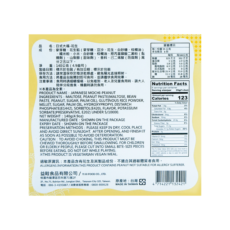 台湾小山等露 花生麻糬 日式大福 140g