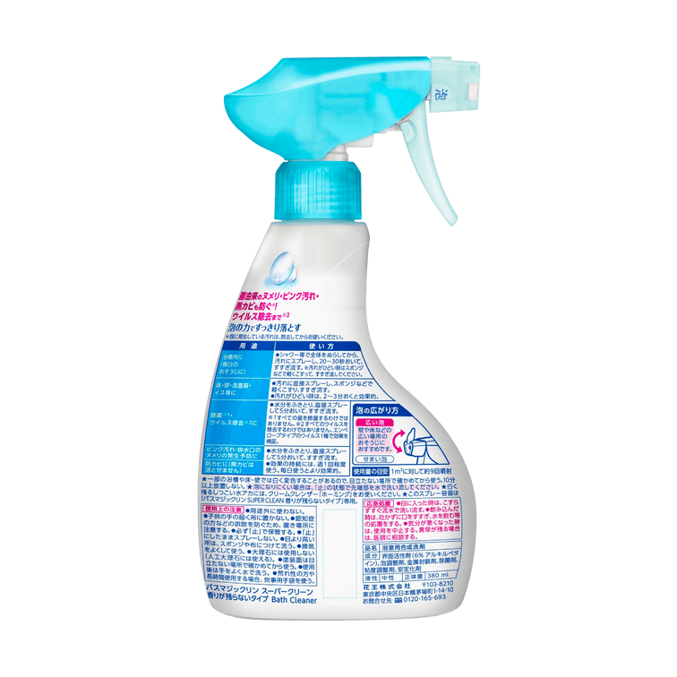 日本KAO花王 浴室浴缸多用途清洁剂 去水垢污垢水渍除垢剂泡沫喷雾 无香型 350ml【超值2瓶】