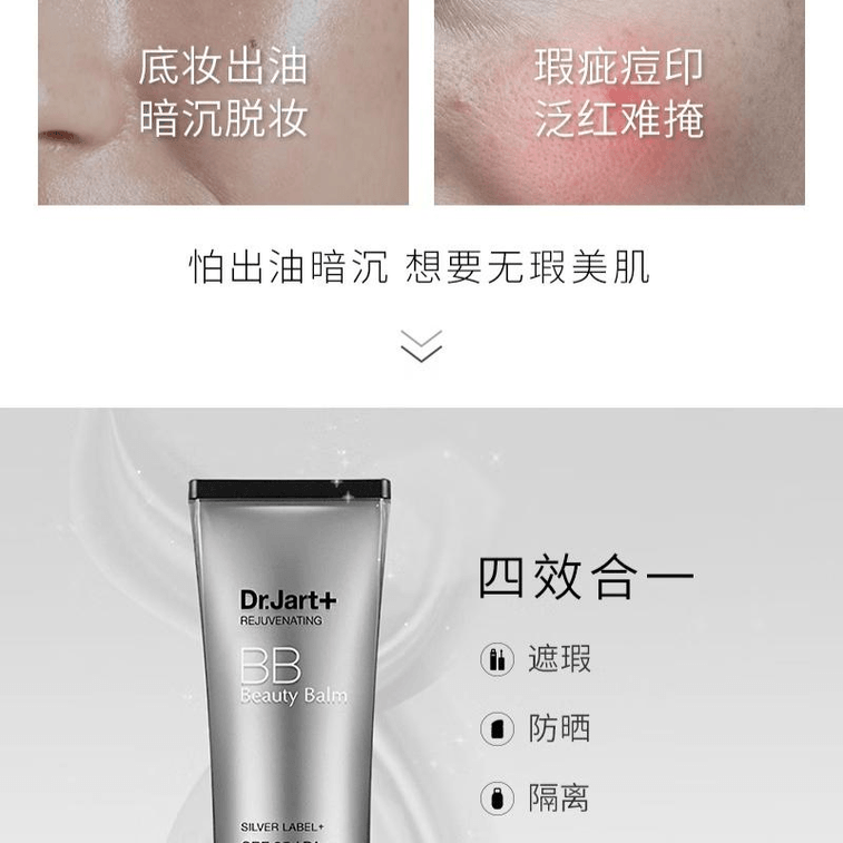 【中国直邮】 韩国 Dr.Jart+ +蒂佳婷 + + + 银管BB霜 SPF50+遮瑕防晒隔离裸妆隐形毛孔 40ml*1个