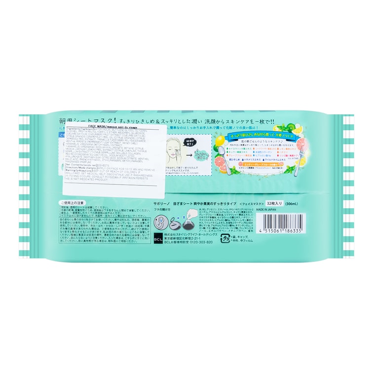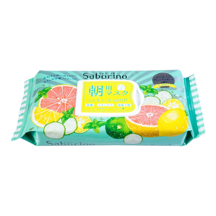 日本BCL SABORINO 60秒懒人 早安面膜 3合1抽取式醒肤补水晨间面膜 果酸清洁去角质 #西柚香型 28片入