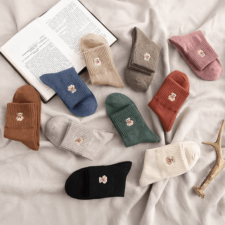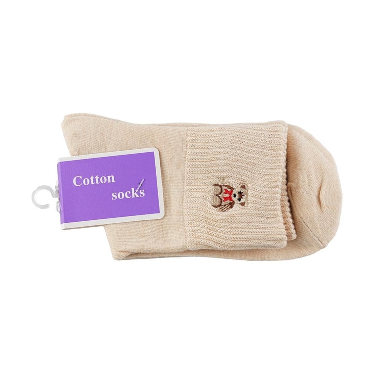 抱抱熊 袜子 中筒袜 可爱小狗袜 米黄色