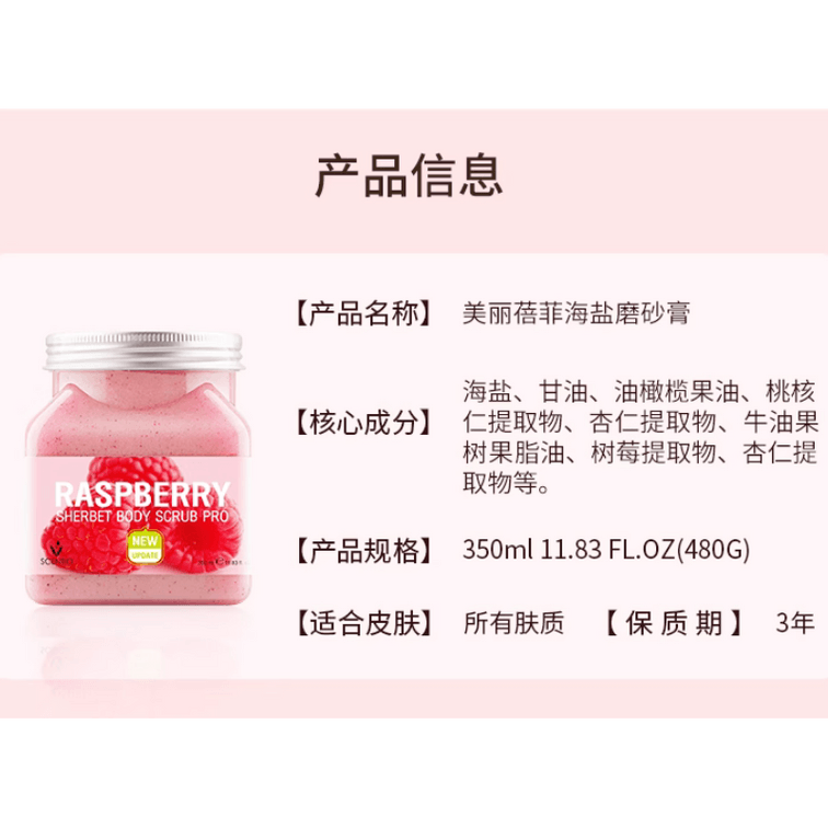 【中国直邮】 泰国 BEAUTY BUFFET 美丽蓓菲树莓海盐身体磨砂膏清洁去角质350ml*1罐