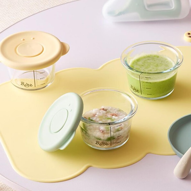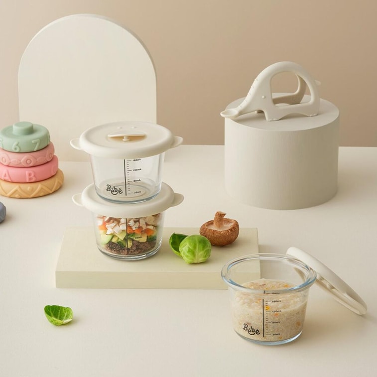 韩国NEOFLAM Bebe 婴儿辅食玻璃储存罐 密封防潮 辅食保鲜 3件套 米白沙色