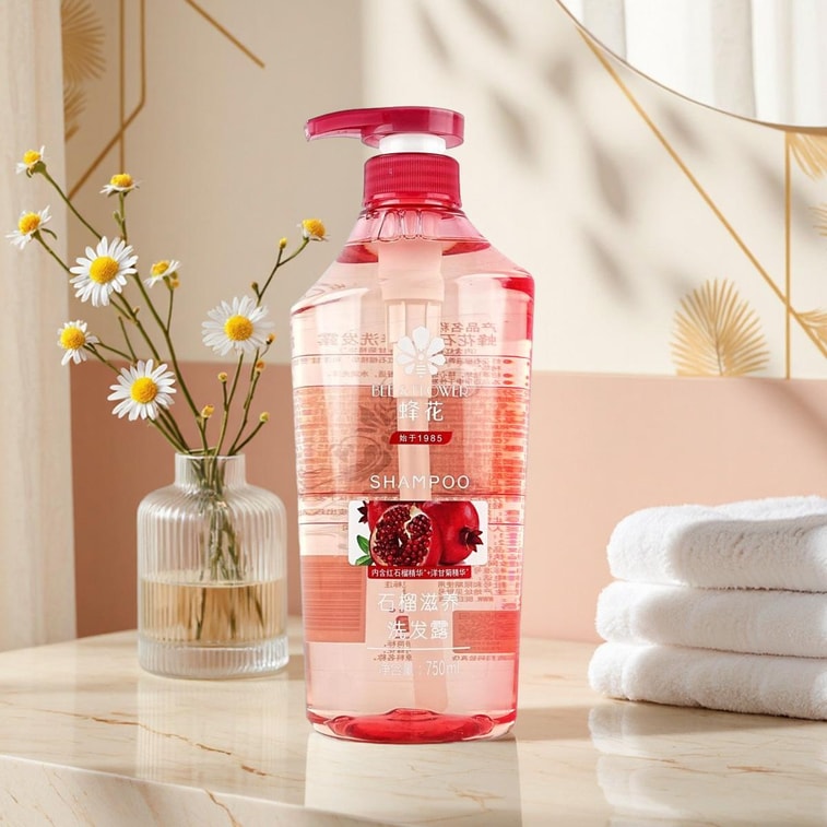 蜂花BEE&FLOWER 红石榴洋甘菊精华洗发露 无硅油双重植萃洗发水 750ml 滋养干枯毛躁发质