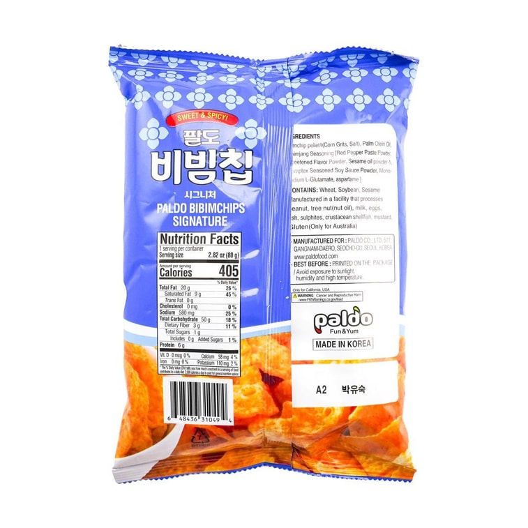 韩国PALDO八道 拌饭风味玉米薯片 甜辣味 80g | 亚米