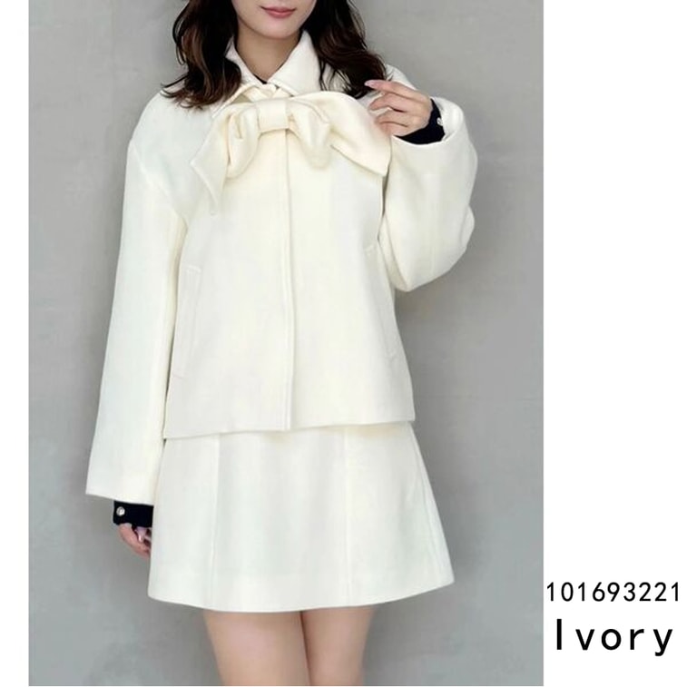 【日本直邮】 日本 MERCURYDUO 大蝴蝶结 短款外套 象牙白 均码 1件