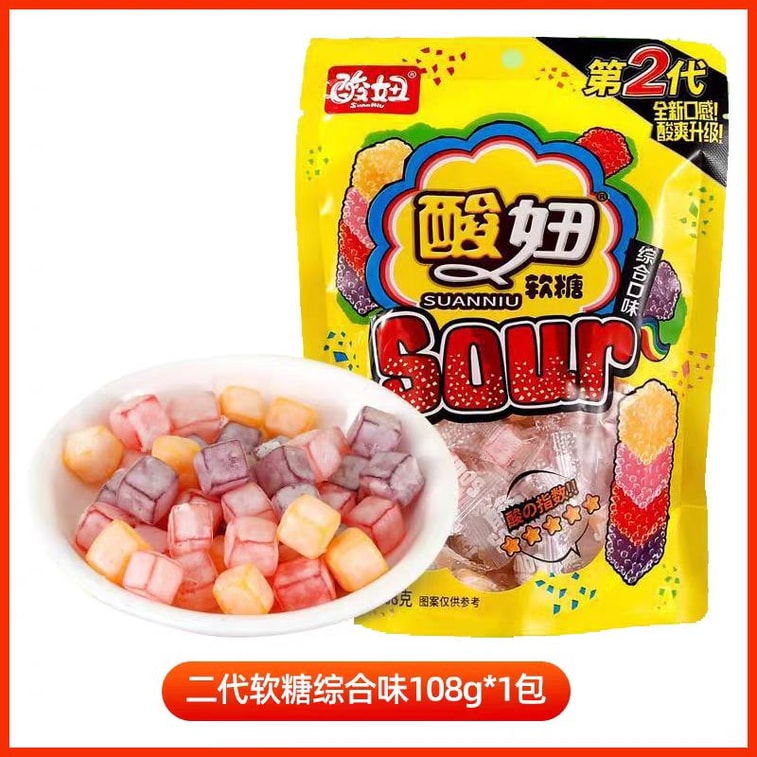 【中国直邮】 酸妞 二代爆酸软糖qq橡皮糖喜糖8090后童年怀旧休闲零食大礼包上课 混合味大袋 108g*1袋