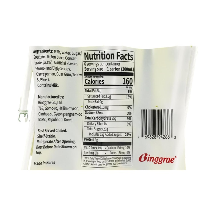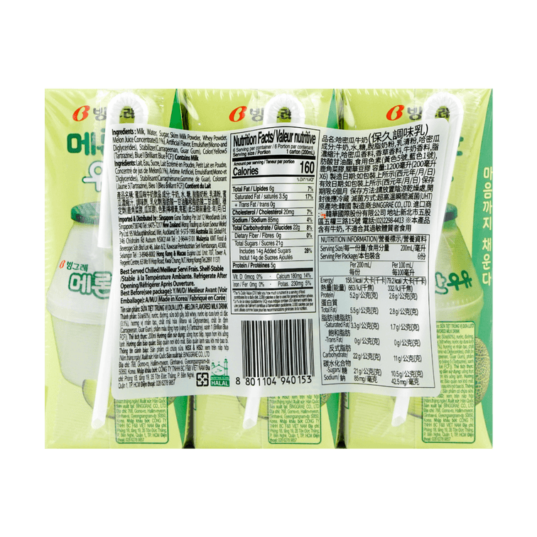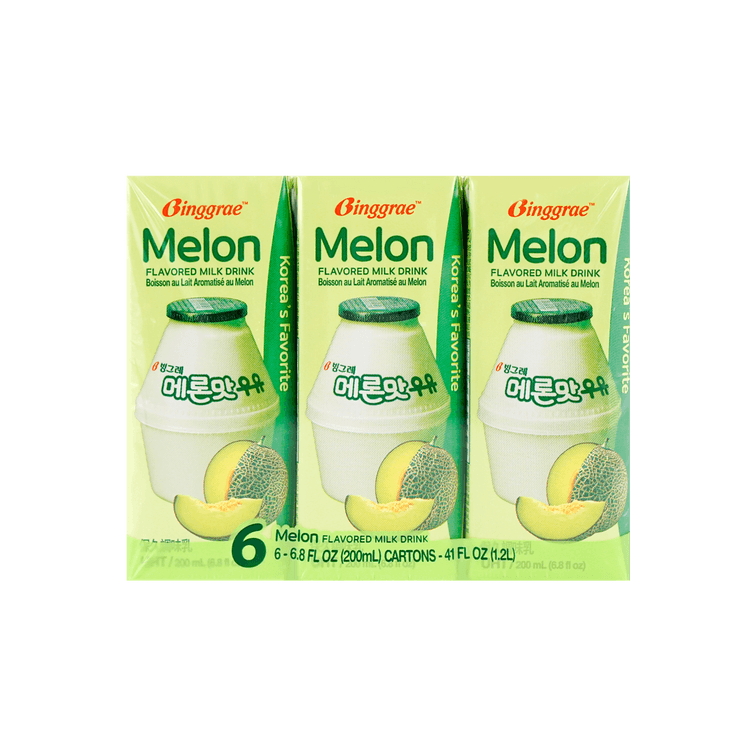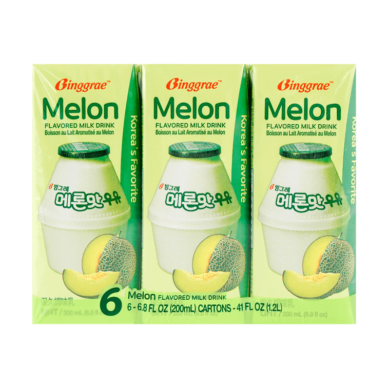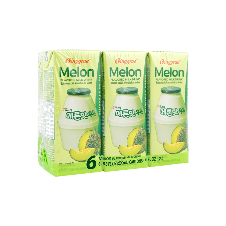 韩国BINGGRAE宾格瑞 哈密瓜牛奶饮料 200ml*6盒装【早餐必备】【韩剧同款】