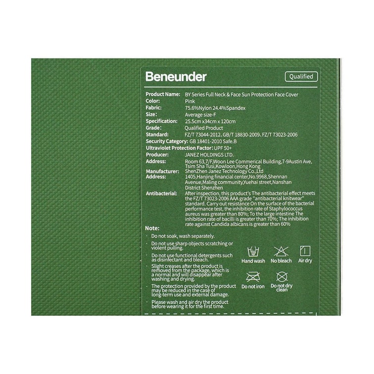 BENEUNDER蕉下 冰屿系列 全脸防晒面罩口罩 护颈脸基尼 浅藕粉 均码F