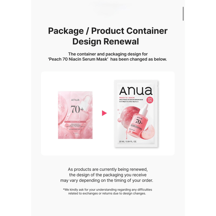 韩国 ANUA 桃子 70 烟酰胺精华面膜 / 25毫升 x 10片