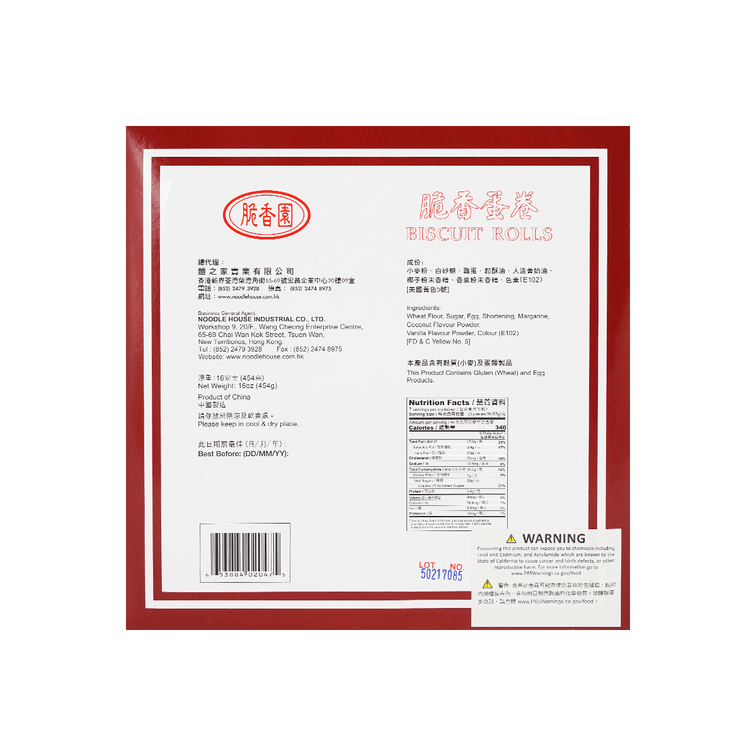 香港脆香园 脆香蛋卷 原味 454g
