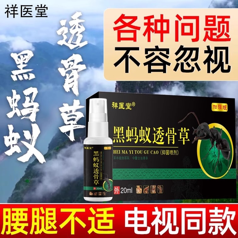 【中国直邮】 祥医堂 黑蚂蚁透骨草抑菌喷雾 颈肩腰腿舒筋 去除风湿 活血止痛 20ml/盒