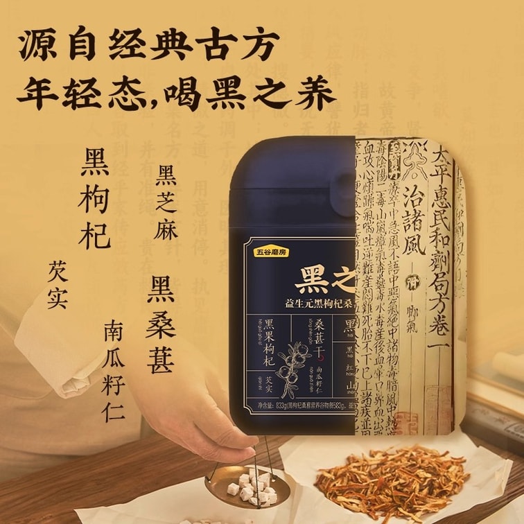 【中国直邮】 五谷磨房 黑之养黑枸杞谷物营养餐黑大豆黑芝麻黑小麦片代早餐粉 833g