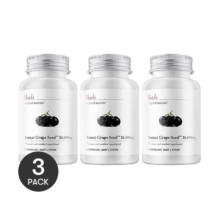 澳洲UNICHI 新版黑葡萄籽粉净化胶囊 原花青素 维生素抗糖 素食胶囊 60粒*3 减少自由基 增加胶原蛋白 守护身体健康【3份超值装】【养护唤醒年轻肌】 | 亚米