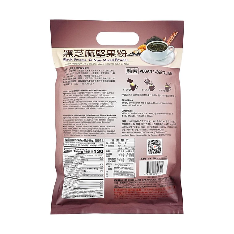 台湾芗汇 黑芝麻坚果粉 280g 【营养谷物代餐粉】【即冲即食】【无添加奶精】
