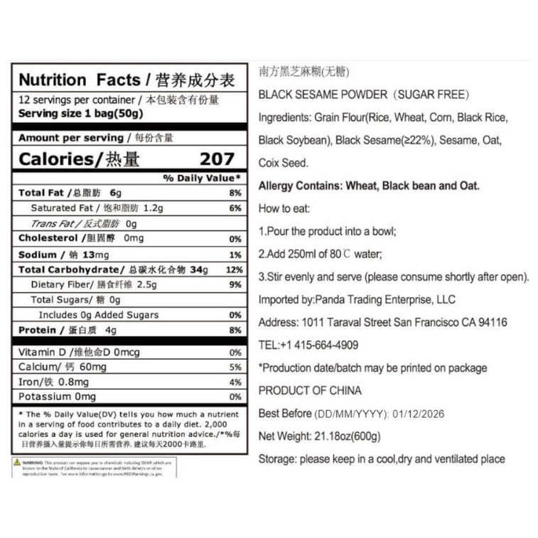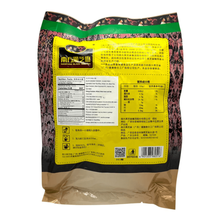 南方 黑芝麻糊 无糖 黑米黑豆粉 600克(50克*12袋)