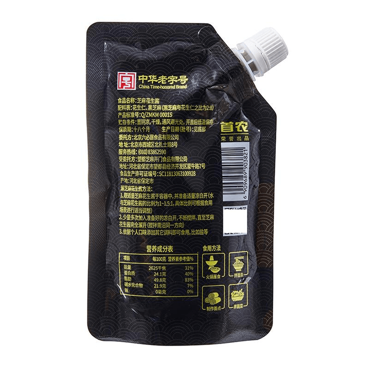 【中国直邮】六必居黑芝麻二八酱烘焙调味酱料芝麻花生拌面吐司面包涂抹酱158g*1袋