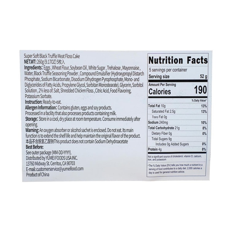 | 口味 | 超松软黑松露肉松蛋糕 |