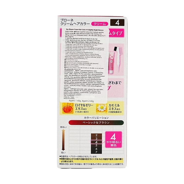 日本KAO花王 Blaune白发专用植物染发剂 发根专用款 4号 Slight Bright Sorrel 微亮栗色