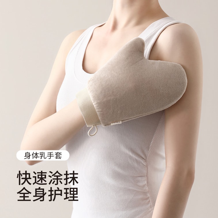 FaSoLa 身体乳手套 米色 1只 快速涂抹 擦精油 植绒擦