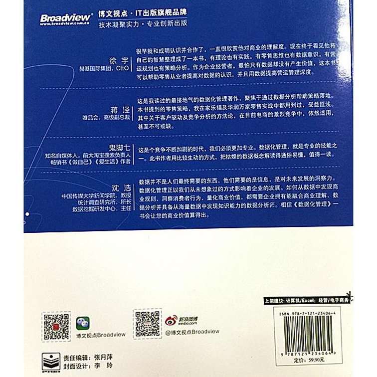 @数据化管理,是对于商务数据化与智能化的一个系统的探索与思考,开启了一个新的商业思考的维度,值得我们在商业巨变的时代,掌握时代的潮流与商业的未来。