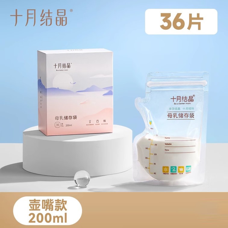 十月结晶 壶嘴款储奶袋200ml*36片 母乳冰箱专用保鲜袋 可加热存奶袋 独立密封壶口设计