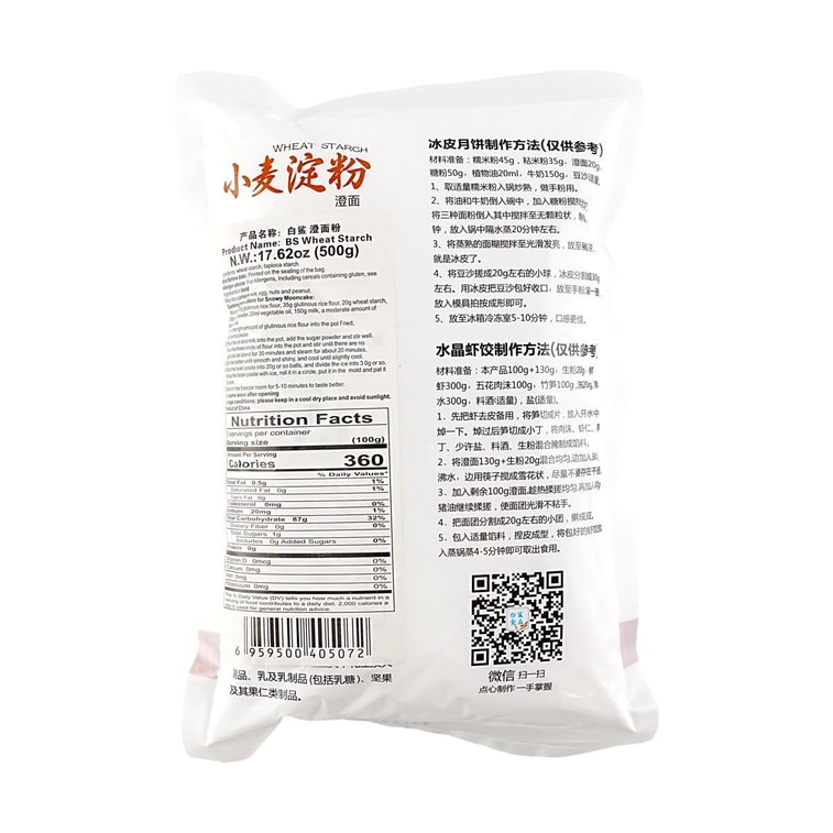 白鲨 小麦淀粉 澄面 500g【水晶虾饺烧麦青团冰皮月饼用】