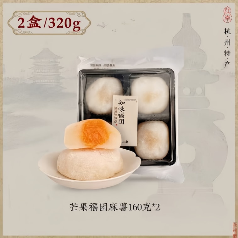 【中国直邮】 知味观 爆浆芒果福团麻薯 160g*2盒 江南特色糕点 网红干吃汤圆 软糯拉丝 早餐速食糯米糍糕点零食