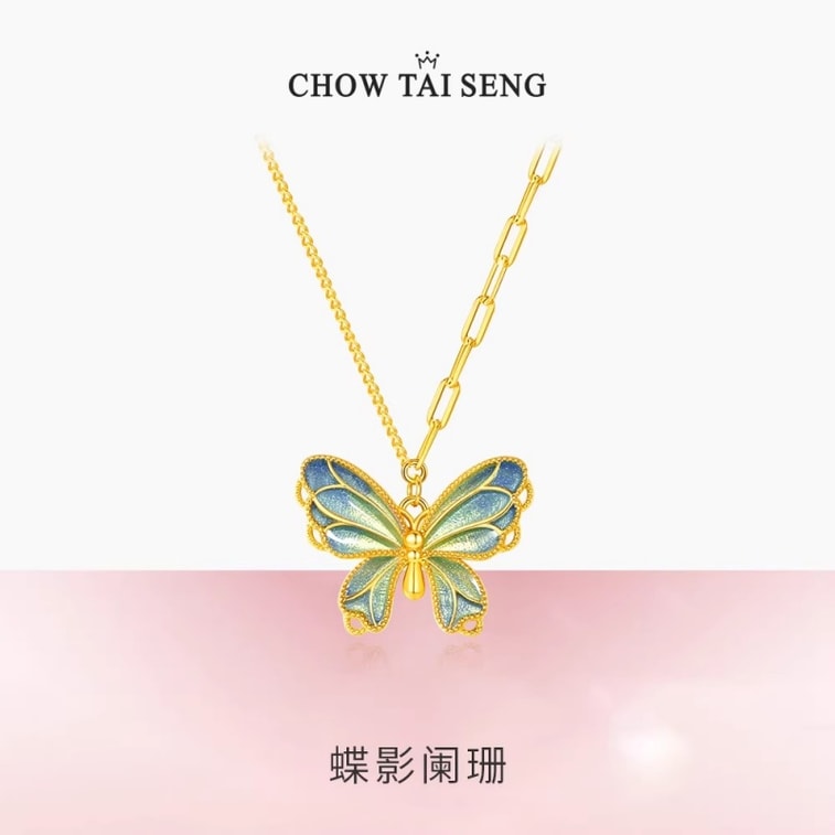 【中国直邮】 周大生 蝴蝶925纯银项链女高级感小众渐变珐琅首饰浪漫约会生日礼物送女友家人 蓝绿蝴蝶 一条装 | 亚米