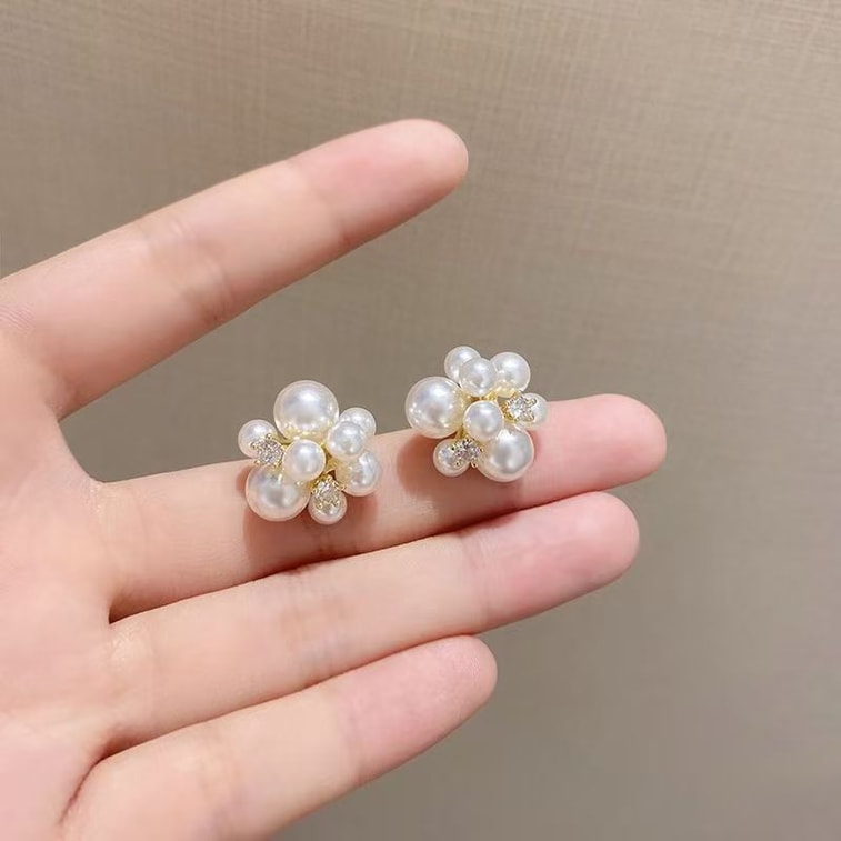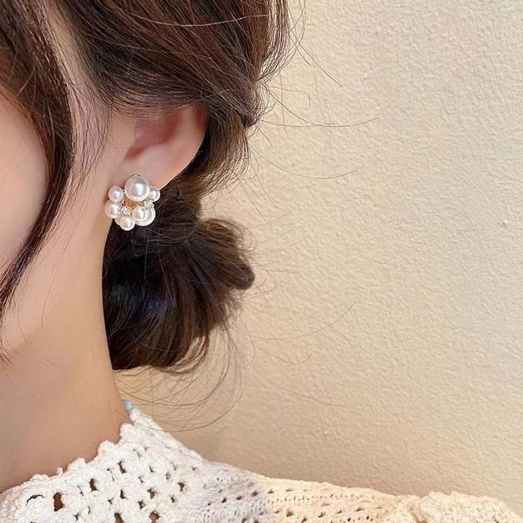 Fancy Jasmine 蝴蝶兰珍珠花簇耳钉 1对 花簇设计 温柔又梦幻 少女心爆棚 【附赠Facny Jasmine高端抽拉悬浮首饰盒】 | 亚米