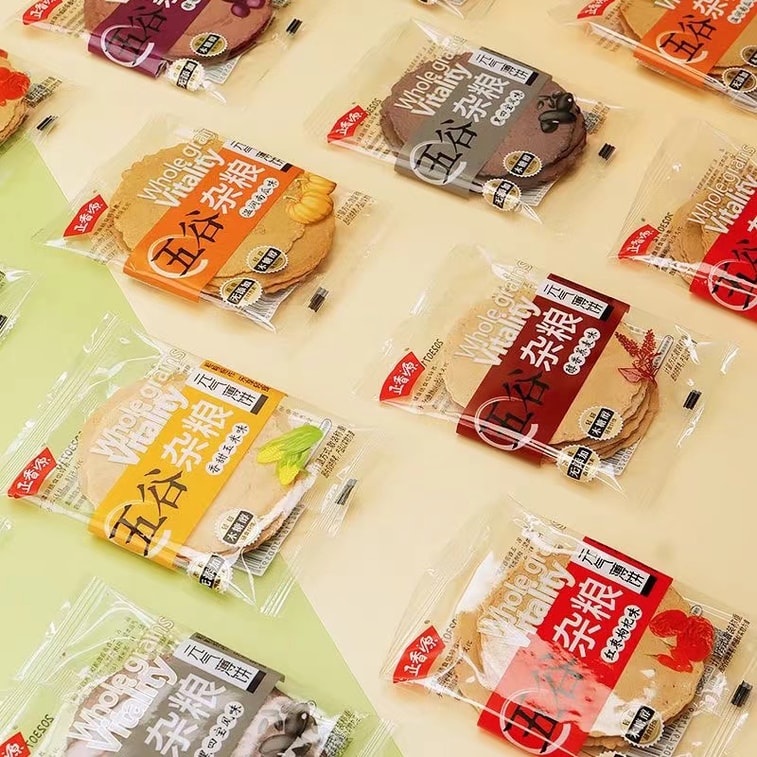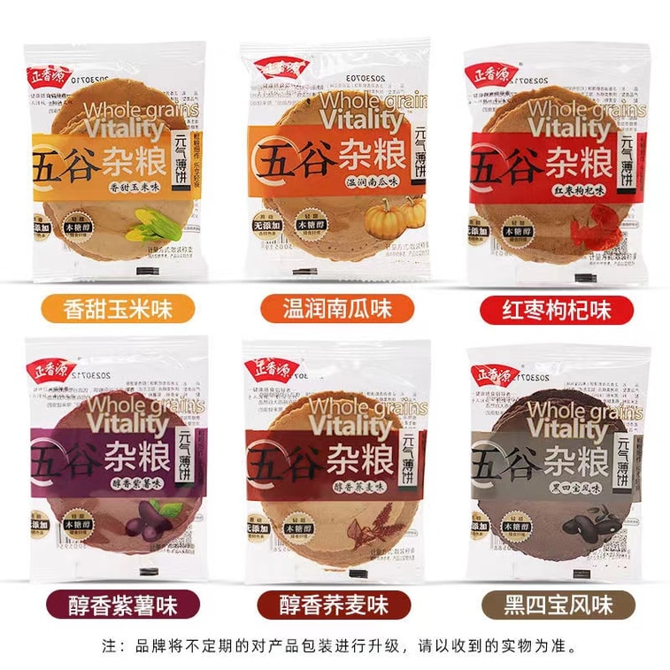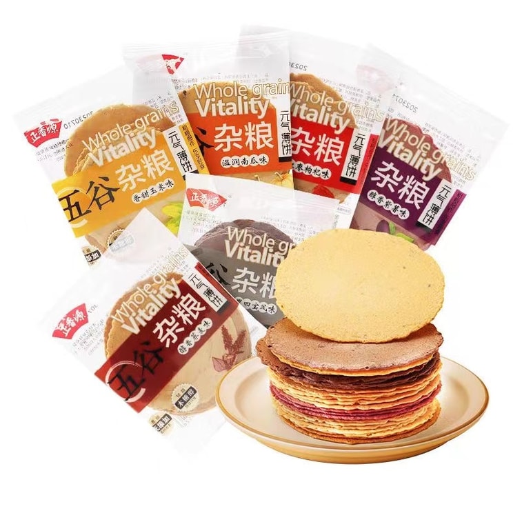 中国 正香源 五谷杂粮六口味五谷薄脆 无蔗糖 无香精色素 风吹饼 短保 健康膳食 330克 6包分装 元气薄饼零食饼干 | 亚米