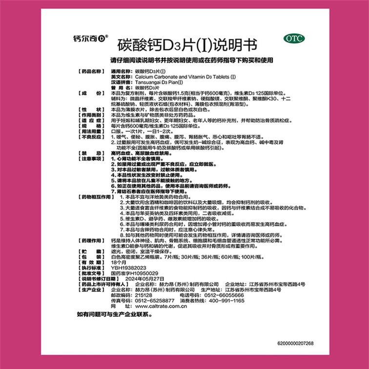 【中国直邮】 钙尔奇 碳酸钙D3片妊娠哺乳期妇女老年人等钙补充剂60片/盒