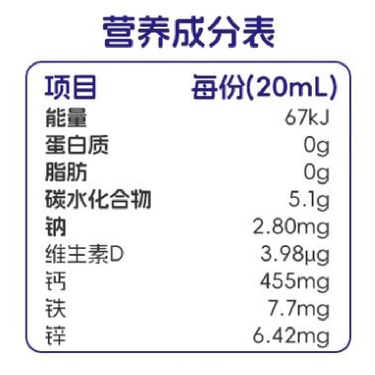 | 主要原料 | 水、木糖醇、柠檬酸钙、甘油、低聚果糖、柠檬酸、 黄原胶、富马酸亚铁、血橙浓缩液、柠檬酸锌、 |
