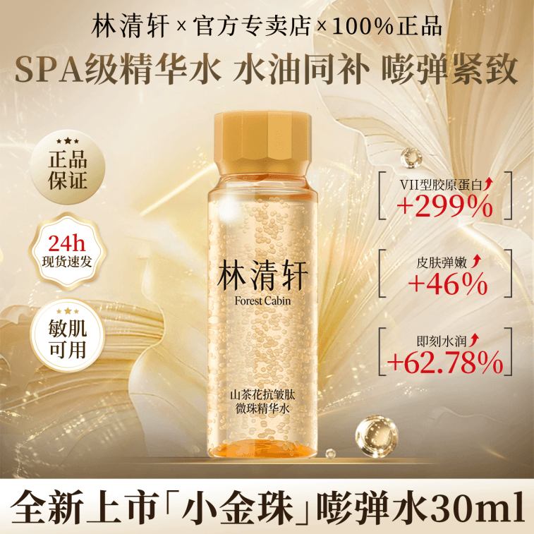 【中国直邮】 林清轩 爆款新品全新山茶花抗皱微珠精华水 补水保湿抗皱 30ml*1瓶