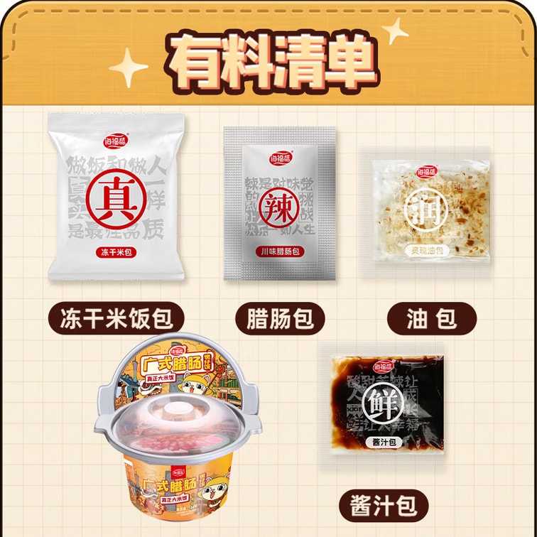 【中国直邮】 海福盛 方便速食冻干自热米饭广式腊肠煲仔饭122g加饮用水160ml