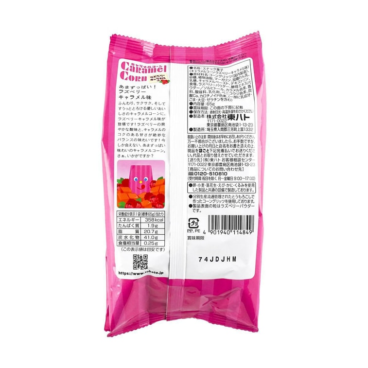 日本TOHATO桃哈多 焦糖玉米脆果 树莓味 65g