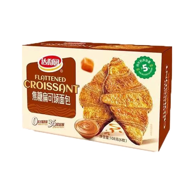 达利园 好吃到绝绝子焦糖扁可颂面包 牛角包中式糕点点心 108g 【奶香浓郁 酥脆可口】【层层纹理 酥掉渣】