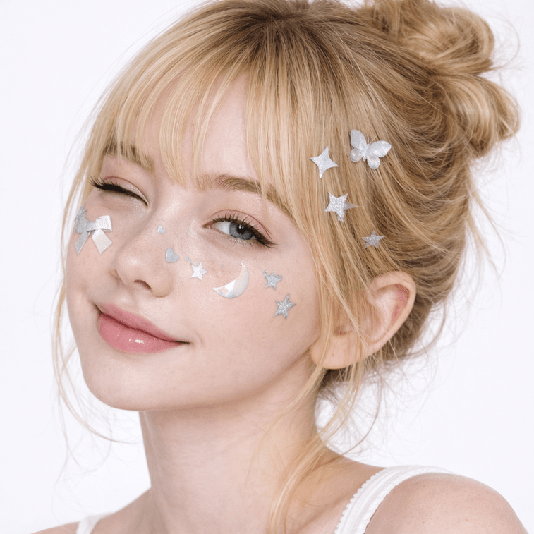 一款可自然遮盖肌肤瑕疵的闪亮全息设计痘痘贴。