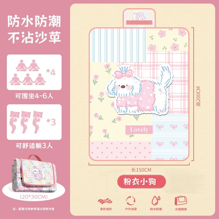 FOXTAIL 卡通便携野餐垫 露营垫 户外地垫 防水 防潮 便携 折叠 郊游 居家-粉衣小狗 中号(150*200cm)1个* | 亚米