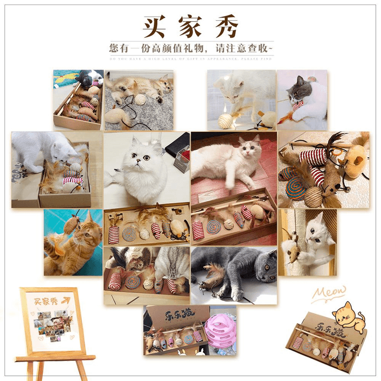 【中国直邮】华元宠具 猫玩具羽毛逗猫棒耐咬磨牙棒幼猫自嗨解闷套装 逗猫棒礼盒7件套*1盒