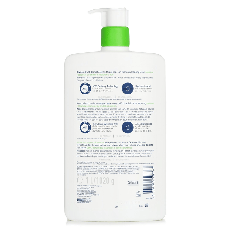 【香港直邮】CeraVe适乐肤 温和保湿洁肤露 中性至干性肌适用 598767 1000ml/33.8oz