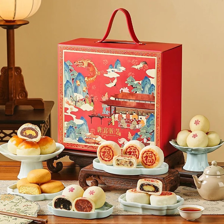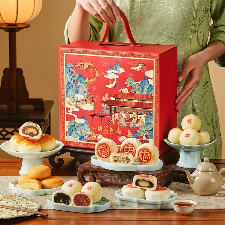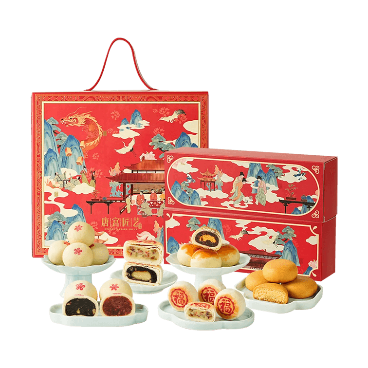 皇家尚食局x西安博物院联名 长安喜乐 宫廷糕点礼盒 蛋黄酥椰蓉酥玫瑰枣泥核桃酥饼 18枚入 855g【春节年货必买】【陕西特产点心】