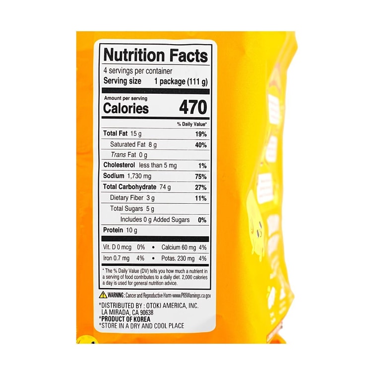 韩国OTTOGI / OTOKI不倒翁 切达芝士拉面 111g*4包【韩式泡面方便面】【韩国人气品牌】