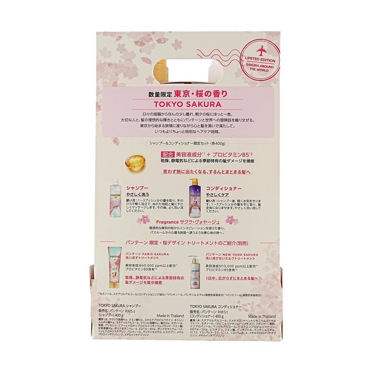 日本PANTENE潘婷 樱花柔润泛醇精华洗发水护发素套装 角蛋白&维生素B5 400ml+400g 顺滑光泽 分叉断裂发质【纽约樱花限定】