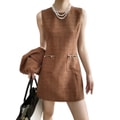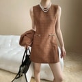 【中国直邮】 HSPM 栗色中古法式小香风外套短裤背心裙可组套装 棕色S背心裙 1件