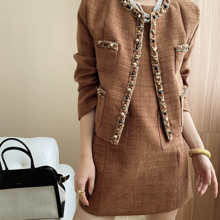 栗色小香风套装,穿上秒变法式复古大小姐