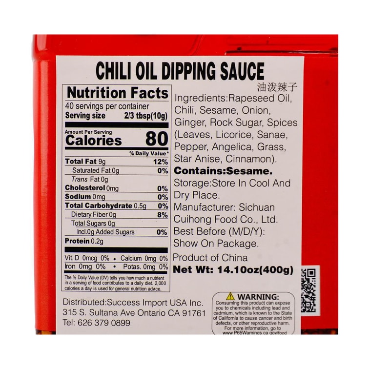 翠宏 油泼辣子 红油辣椒油 凉拌菜饺子调味 400g 【正宗川味 调味救星】