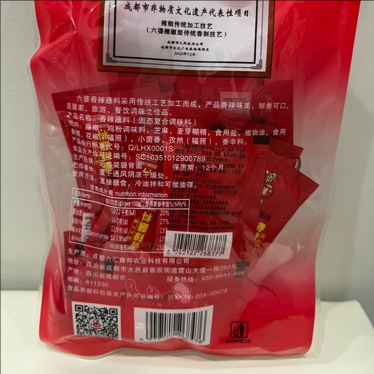 【黑五大促】【中国直邮】 成都六婆 六婆辣椒面香辣蘸料烧烤火锅味碟便携装2g*20