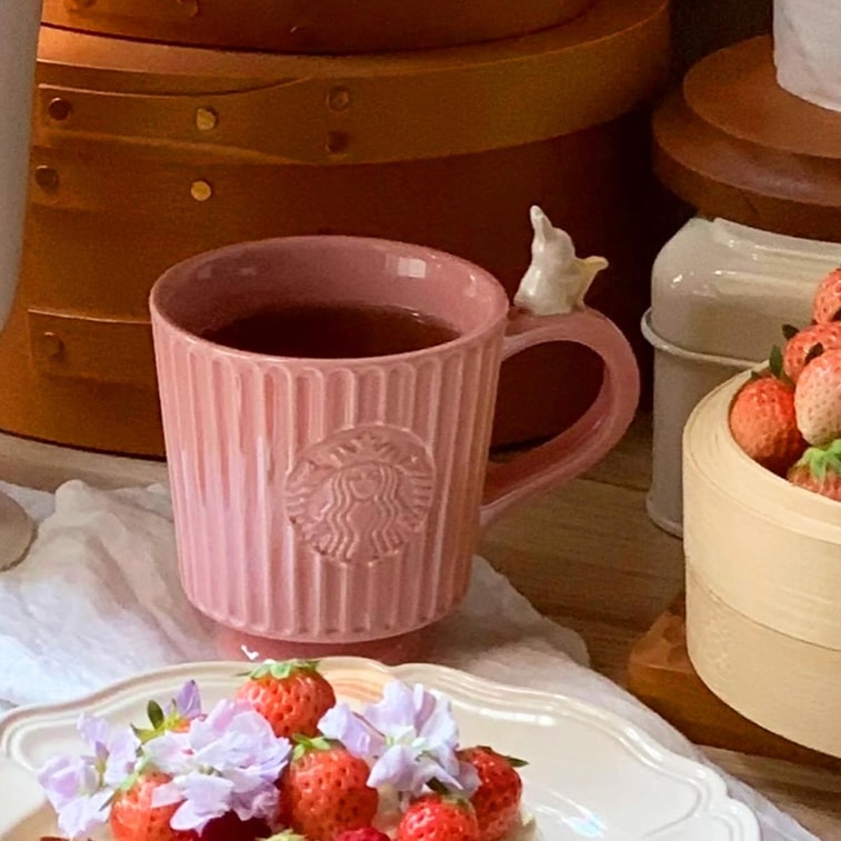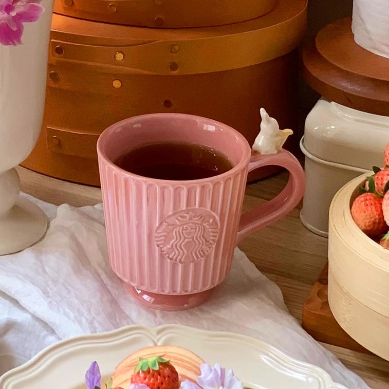 中国STARBUCKS星巴克 粉色条纹陶瓷马克杯子 复古杯型 296ml【花园舞曲】2025年限定